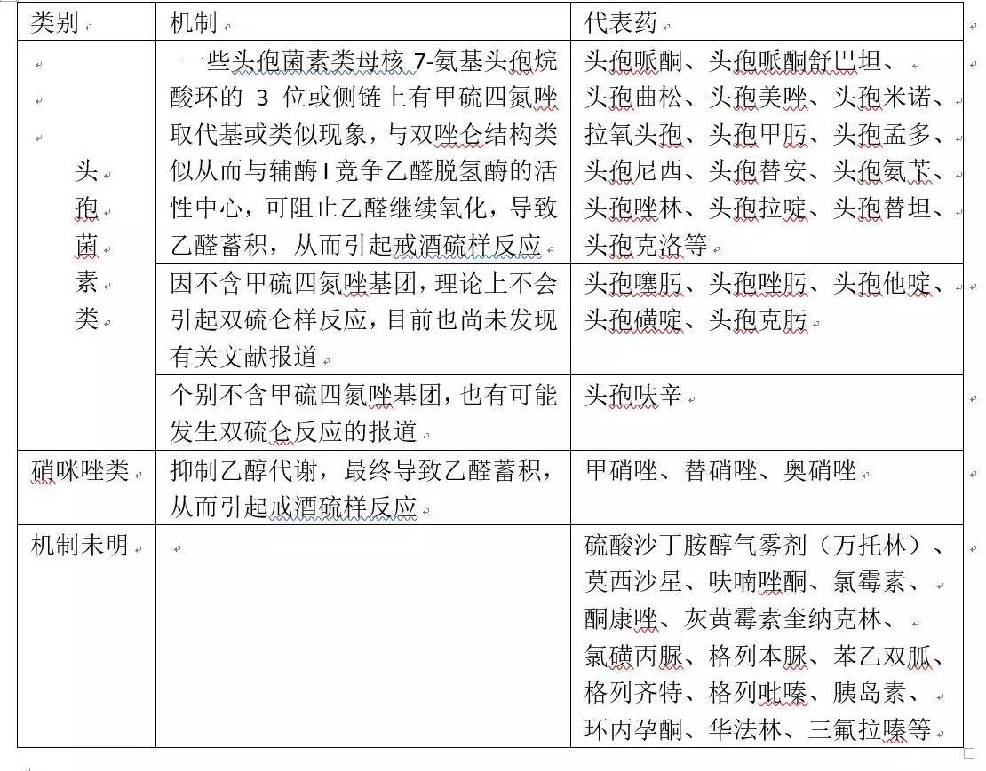 說(shuō)到吃藥+喝酒要人命,大家比較熟悉的是使用************后喝酒要人命的藥源性雙硫侖樣反應!當然不是所有的************都會(huì )引起藥源性雙硫侖樣反應!一般都是含有甲硫四氮唑基團******才會(huì )引起!因其抑制肝臟中的乙醛脫氫酶,導致乙醇的中間代謝產(chǎn)物——乙醛代謝受阻,使血液中乙醛濃度增加而發(fā)生雙硫侖樣反應!